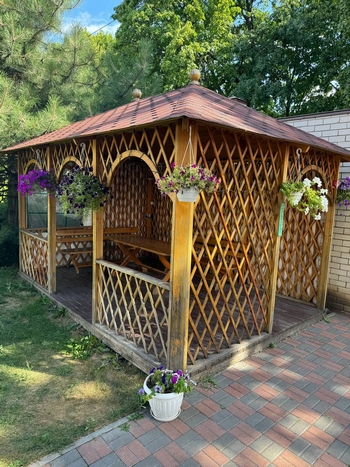 Територія будинку ретельно облаштована і більше нагадує заміський пансіонат, ніж лікарняний двір. Тут можна відпочивати, насолоджуватися природою та відновлювати сили.