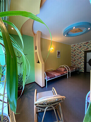 Мешканці проживають у комфортних і теплих кімнатах, які за дизайном і оснащенням не схожі на лікарняні палати, а створюють відчуття справжнього дому.